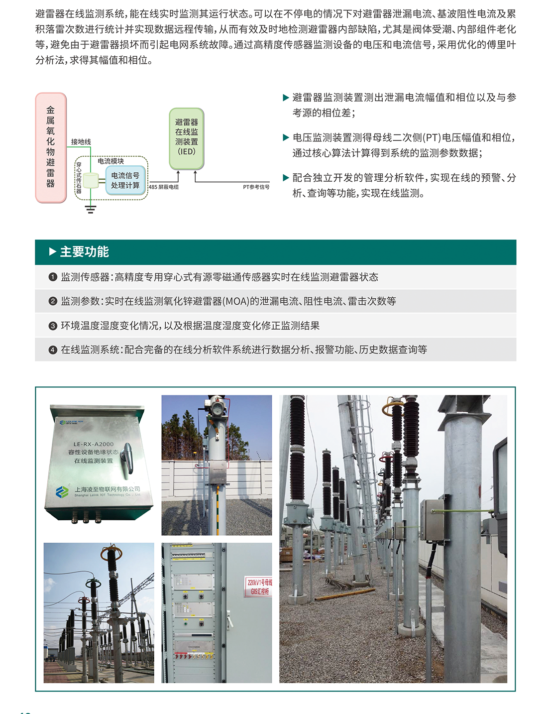 避雷器在線監(jiān)測系統(tǒng),能在線實(shí)時(shí)監(jiān)測其運(yùn)行狀態(tài)。可以在不停電的情況下對避雷器泄漏電流、基波阻性電流及累